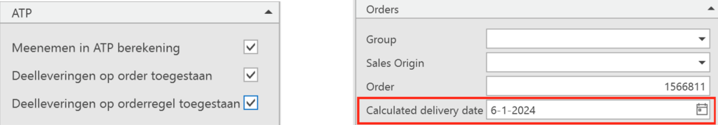 Next to these parameters, also the desired delivery date can be denoted in the order. If the user has the Shipment module this will be calculated by the module, otherwise, it will be based on the purchase order.