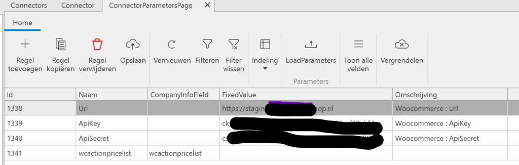 Met de knop Load parameters kan je de parameters ophalen die ingevuld kunnen worden: